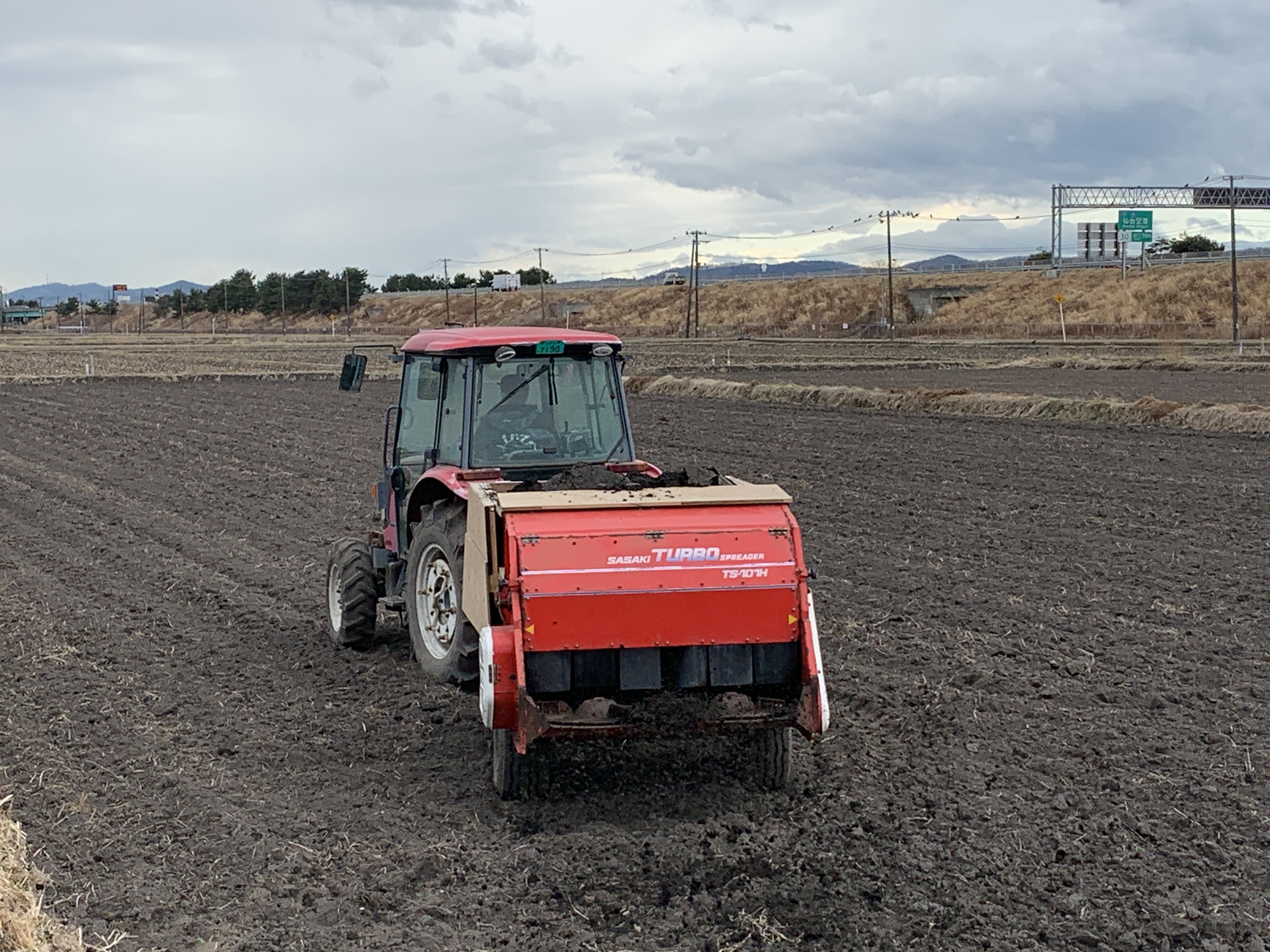 宮城県のU.M.A.S.I.様※の農地で固形肥料の散布を行いました。※U.M.A.S.I.様は農業、農作業の機械化を進め、植松地区の担い手として地区内統一を図る。強固な体制を整備し、地域農業に寄与するとともに、地区内の社会の維持、活性化を図り、文化、伝統、を将来に承継する組織として活動しておられます。